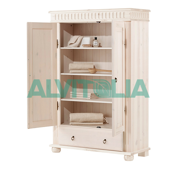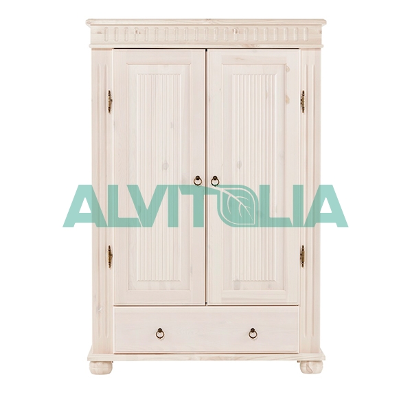 Небольшой шкаф-тумба для хранения вещей. Фасады украшены рифлёной решеткой и багетами, как и вся коллекций Хельсинки. Изделие сделано полностью из массива сосны.