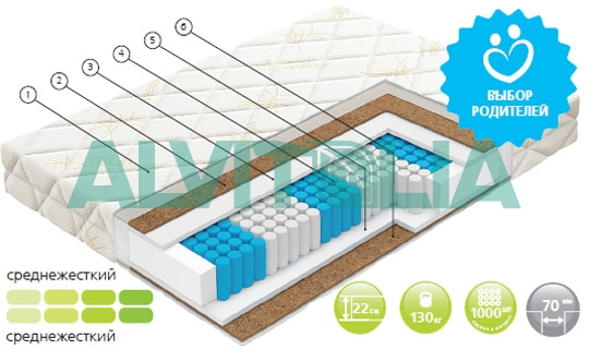 Среднежесткая модель с ортопедическими свойствами, идеальными для здоровья подростка. Хорошо поддерживает позвоночник, формируя правильную осанку.