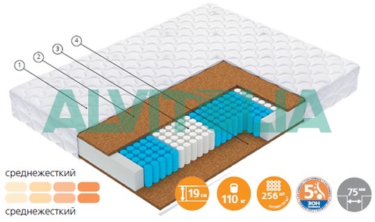 В этой модели жесткость кокосовой койры сбалансирована упругостью независимых 5-зональных пружин, гибко подстраивающихся под форму тела. Такая конструкция обеспечивает правильную жесткую поддержку, сохраняя комфорт отдыха. Матрас Focus – для тех, кто сосредоточен на заботе о здоровье.