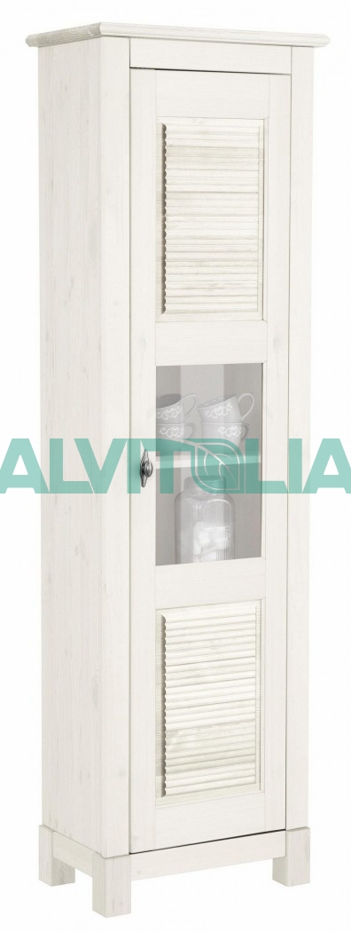 Компактный шкаф (пенал) для книг, сувениров и прочих вещей. Одинаково уместен и в небольшой гостиной, и в детской комнате, так как имеет небольшую высоту. Витринная часть оживляет и придаёт нарядности данному модулю.