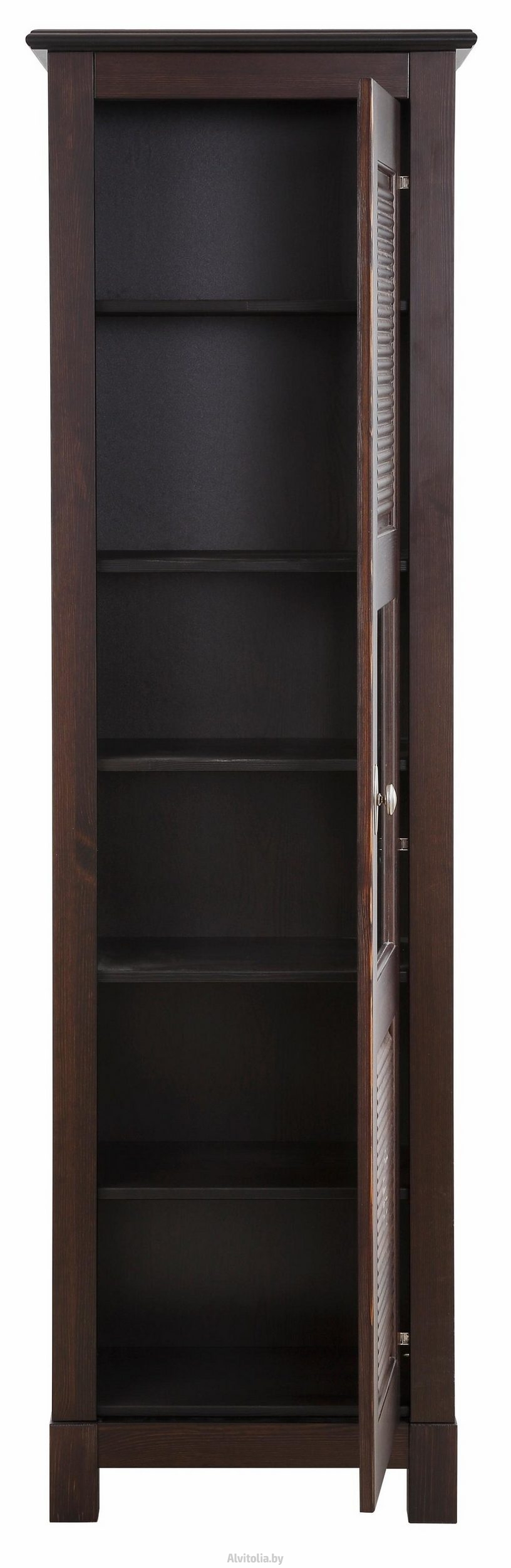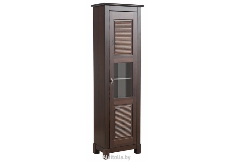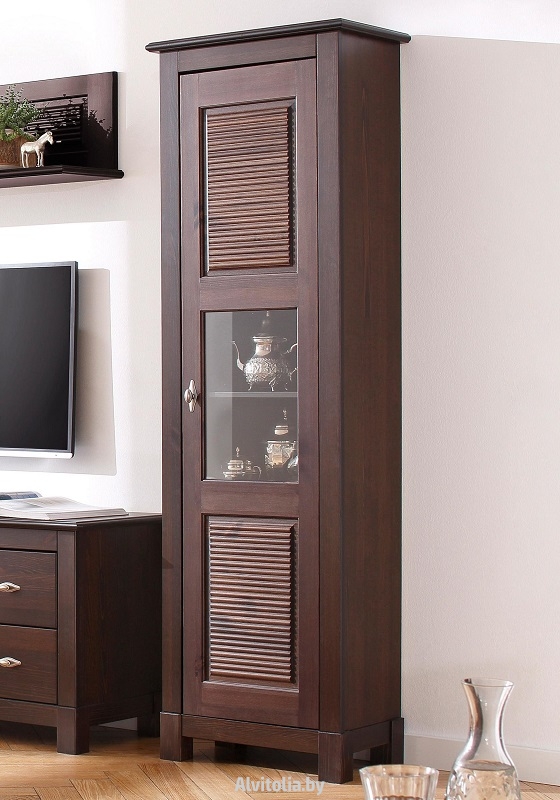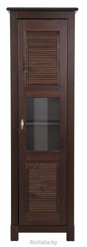 Компактный шкаф (пенал) для книг, сувениров и прочих вещей. Одинаково уместен и в небольшой гостиной, и в детской комнате, так как имеет небольшую высоту. Витринная часть оживляет и придаёт нарядности данному модулю.