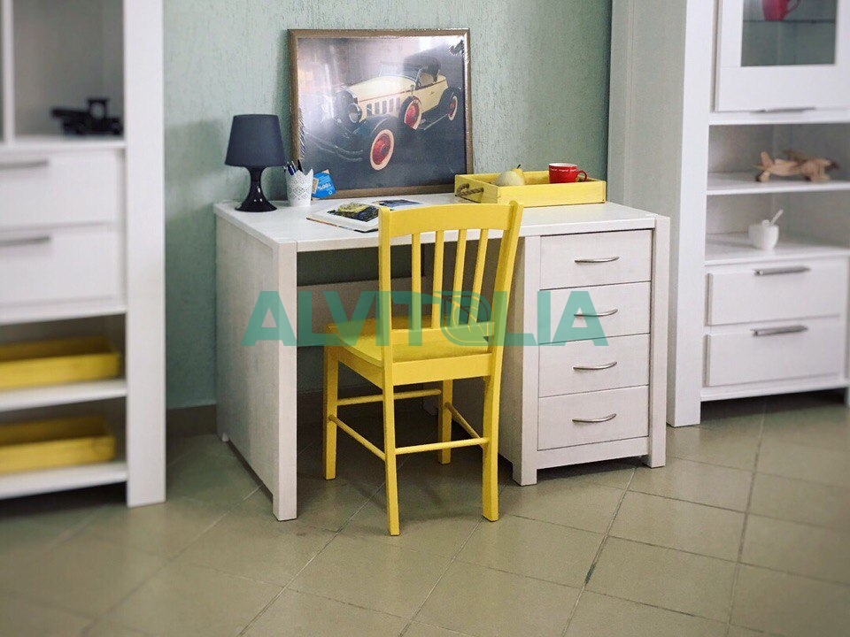 Добротный стол из коллекции Фьорд из массива сосны, устойчивый и надёжный. Одинаково хорошо подойдёт и для кабинета, и для детской комнаты. Стол имеет 4 ящика на роликовых направляющих.