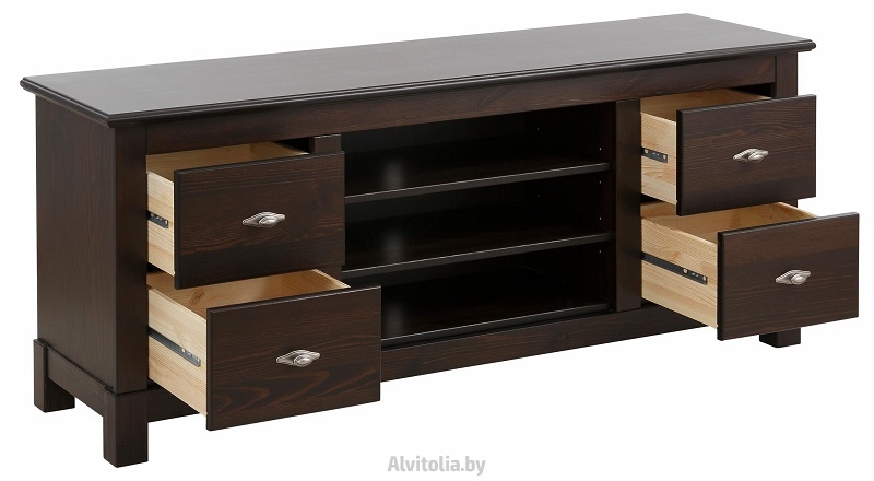 Тумба ТВ "Рауна" — стильная альтернатива привычным подставкам под телевизор. Сочетание выдвижных ящиков и открытых полок даёт возможность различных комбинаций размещения техники и аксессуаров. Габариты изделия оптимальны и подходят под экраны самых распространённых диагоналей
