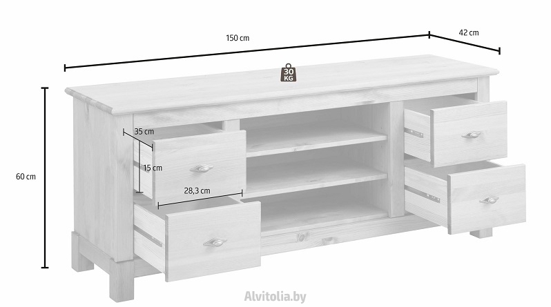 Рекомендуемая максимальная нагрузка на тумбу - 30 кг.