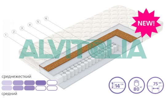 Специальный пружинный блок высотой 14см позволяет использовать матрас в разных моделях кроватей: как для малышей от 3-х лет, так и для детей постарше.