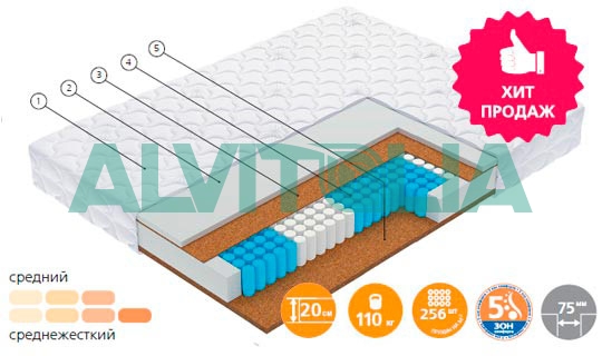 Матрас на основе независимых пружин Smartpocket Pro 5-Zone с выигрышной комбинацией настилочных слоев. Асимметричное сочетание наполнителей позволяет получить в одном матрасе свойства двух: сторона с кокосовой койрой заменяет собой жесткий матрас, а сторона с добавлением Smartflex – матрас средней жесткости. Матрас Profit – это честная выгода.
