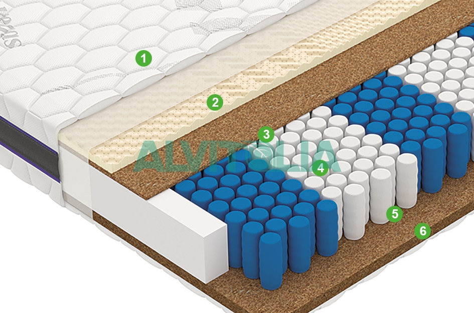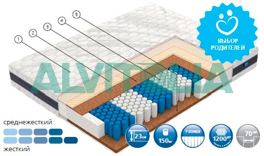 Правильно поддерживает позвоночник за счет плотного расположения пружин и жесткости кокосовой койры. Различная жесткость сторон позволит использовать матрас и для ребенка любого возраста. Разумная инвестиция в здоровье подростка!