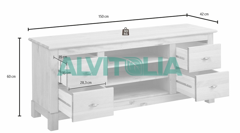 Рекомендуемая максимальная нагрузка на тумбу - 30 кг.