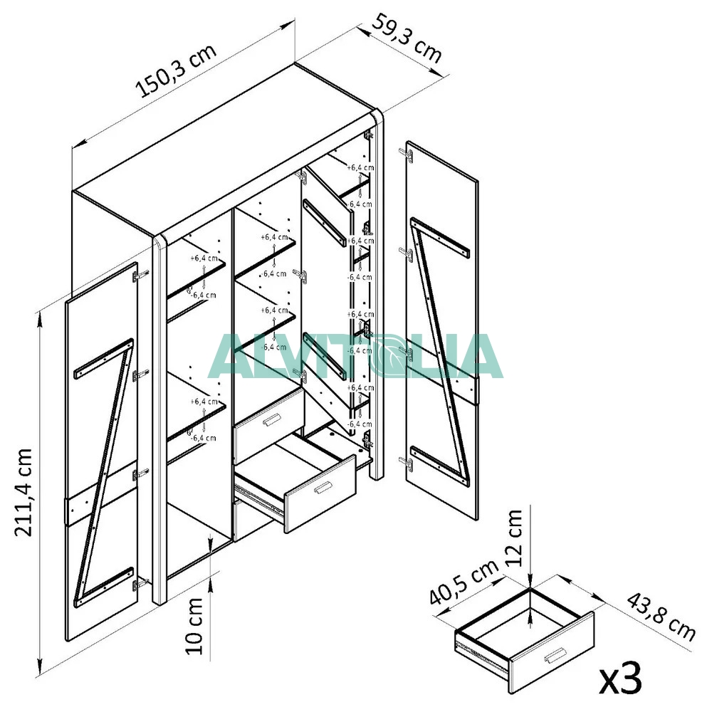 Вместительный трёдверный распашной шкаф Мадейра идеален для ранения как домашней одежды и текстиля, так и верхней одежды с обувью. Наличие двух штанг для одежды поможет разграничить пространство для каждого члена семьи. Шкаф изготовлен из массива сосны, покрыт белым воском и отлично дополнит такие стили интерьера как лофт, скандинавский и модерн.