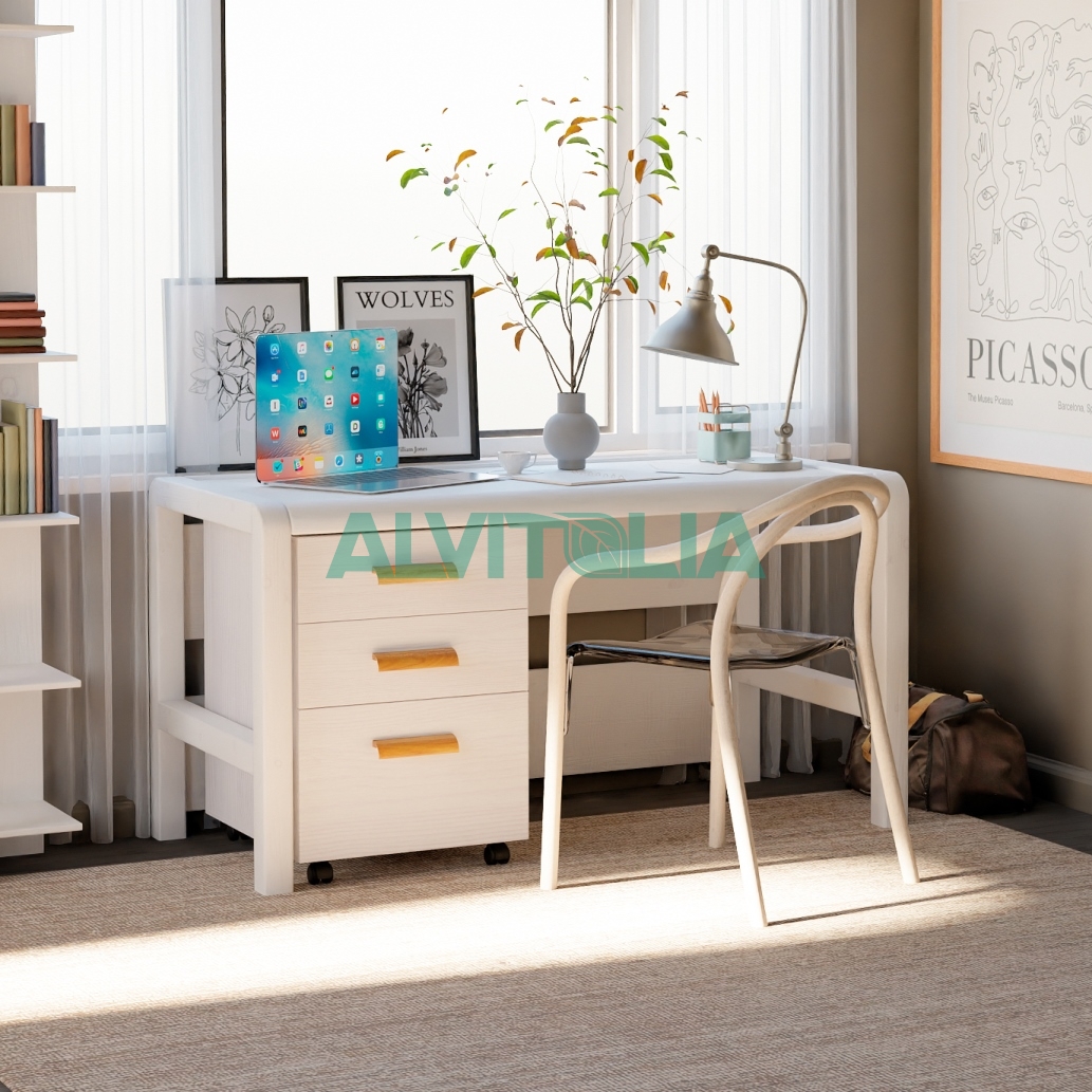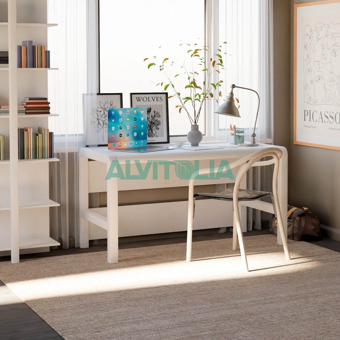 Этот универсальный письменный стол подходит для различных помещений, будь то рабочая зона, кухонное пространство или место для учёбы. Просторные размеры стола и отсутствие встроенной тумбы позволяют использовать его как письменный стол, компьютерный или игровой. Особенностью стола являются закругленная форма ножек, переднего и заднего брусков столешницы.